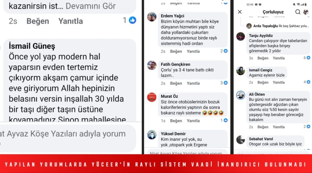 “Otobüs var ama yol yok.” Bir diğer yorum ise beceriksiz belediyeciliğin resmi gibiydi “Bırakın raylı sistemi siz önce otobüslerinizdeki klimaları tamir ettirin”